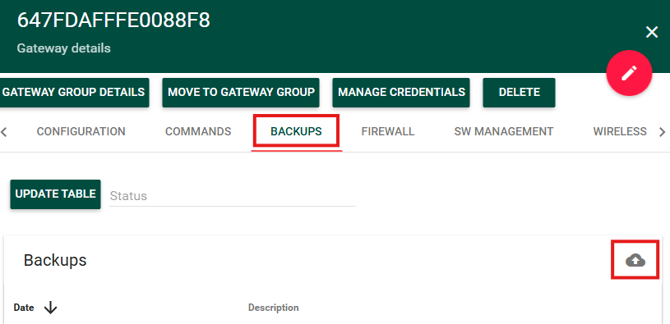 - Select the gateway you wish to create the backup for and ensure it is online.
