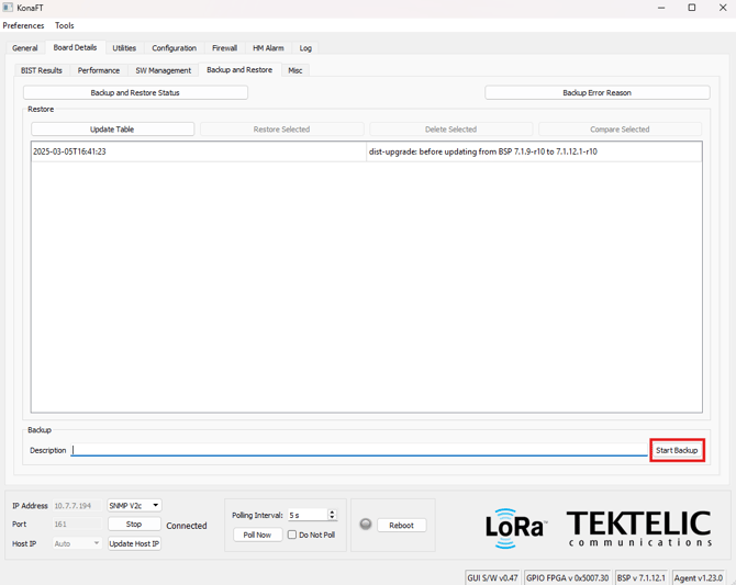 Creating and Restoring a Backup using Tektelic Network Server or Kona Element
